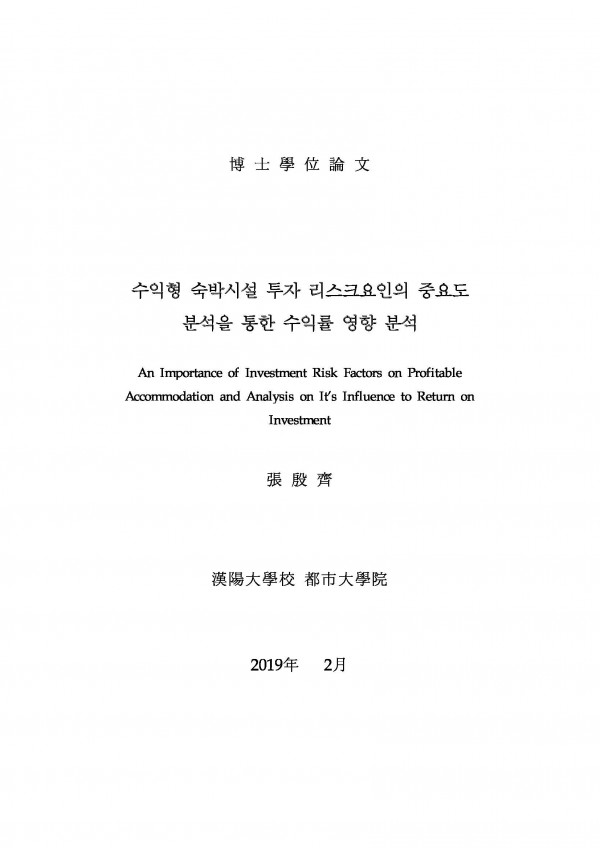 수익형 숙박시설 투자 리스크요인의 중요도 분석을 통한 수익률 영향 분석 > thesis