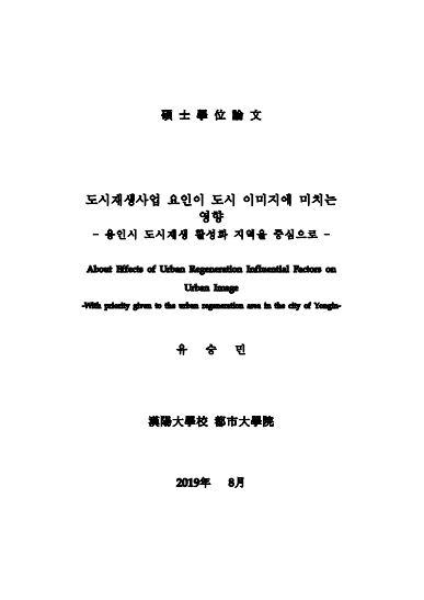 도시재생사업 요인이 도시 이미지에 미치는 영향 : 용인시 도시재생 활성화 지역을 중심으로 > thesis_master