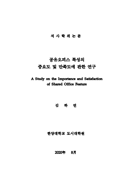 공유오피스 특성의 중요도 및 만족도에 관한 연구 > thesis_master