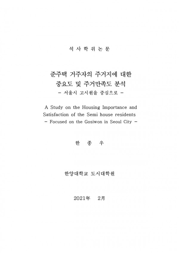 준주택 거주자의 주거지에 대한 중요도 및 주거만족도 분석 - 서울시 고시원을 중심으로 - > thesis_master