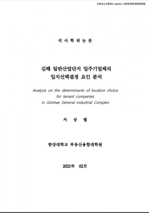 김해 일반산업단지 입주기업체의 입지선택결정 요인 분석 > thesis_master