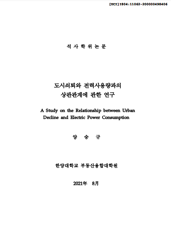 도시쇠퇴와 전력사용량과의 상관관계에 관한 연구 > thesis_master