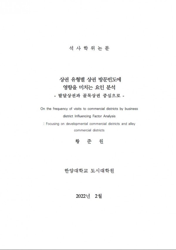 상권 유형별 상권 방문빈도에 영향을 미치는 요인 분석 - 발달상권과 골목상권 중심으로 - > thesis_master