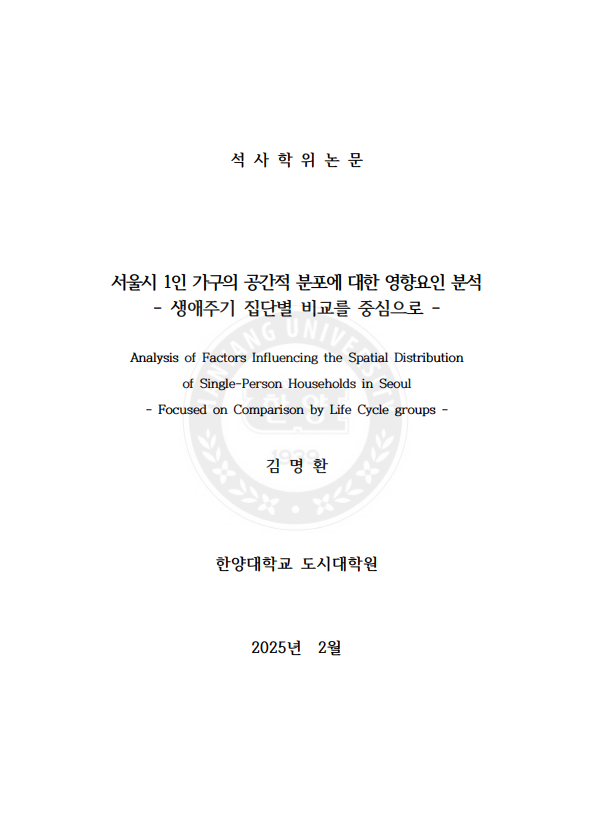 서울시 1인 가구의 공간적 분포에 대한 영향요인 분석 - 생애주기 집단별 비교를 중심으로 - > thesis_master
