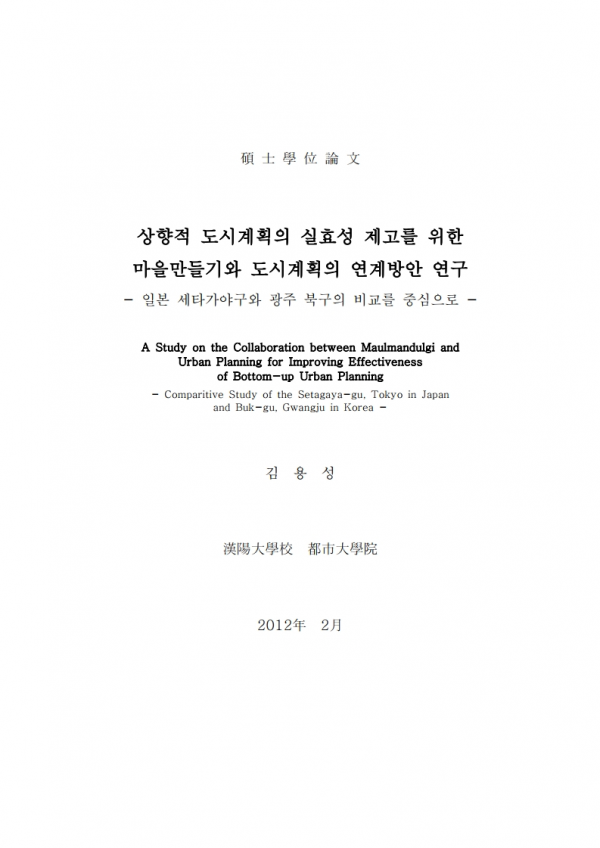 페이지 정보 본문 [상향적 도시계획의 실효성 제고를 위한 마을만들기와 도시계획의 연계방안 연구 일본 세타가야구와 광주 북구의 비교를 중심으로] 김용성(2012) 석사학위논문 관련링크 이전글 다음글 목록