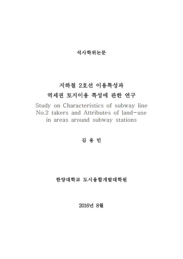 지하철 2호선 이용특성과 역세권 토지이용 특성에 관한 연구 > thesis_master