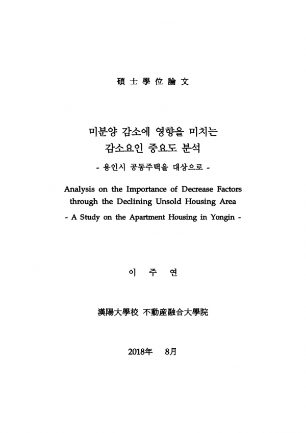 미분양 감소에 영향을 미치는 감소요인 중요도 분석 -용인시 공동주택을 대상으로 > thesis_master