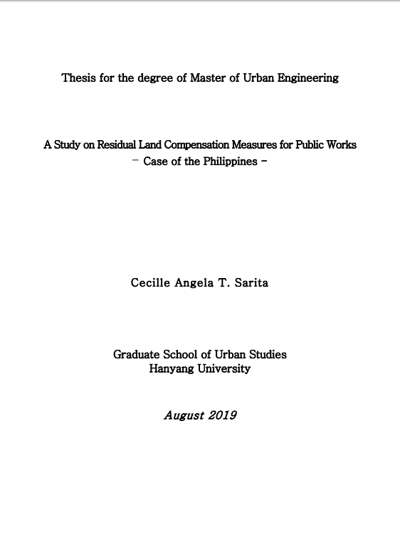 공공기반시설 설치를 위한 토지수용시 잔여지 보상방안에 관한 연구 : 필리핀 사례를 중심으로 > thesis_master
